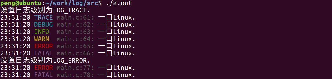 peng@ubuntu:~/work/log/src$ gcc main.c log.c -o run
