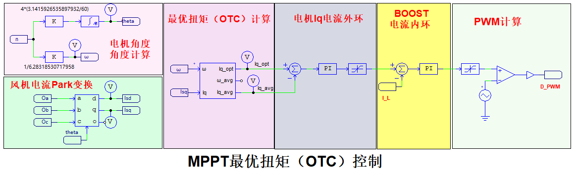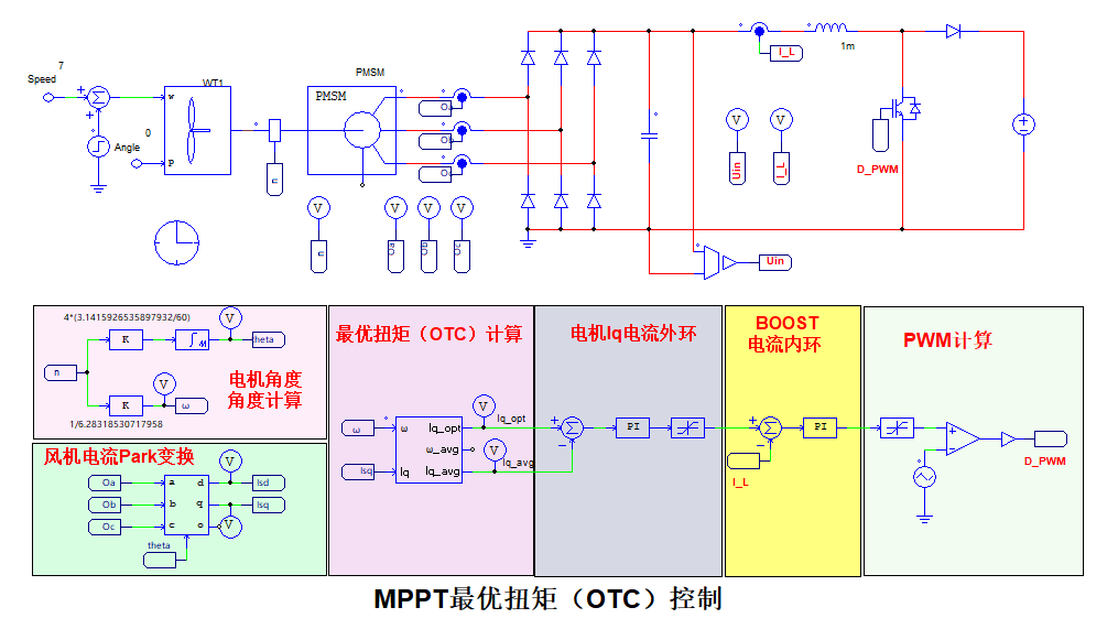 ?外環(電壓環):OTC算法根據實時檢測的發電機轉速(換算得到)計算出最優轉矩,進而產生對應的最優直流電流指令(Iq_opt)。電壓環PI控制器以此電流指令為目標,其輸出作為內環的電流參考。