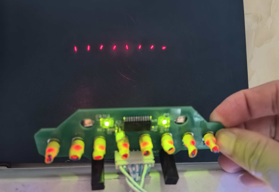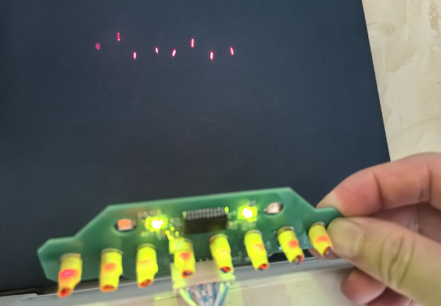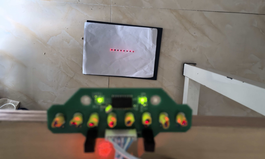 優化后激光模塊效果非常的明顯,激光光源都在一條直線上。最后是將每個激光的接線用熱縮套管套好,確保激光板出線整潔,激光線不容易脫落。