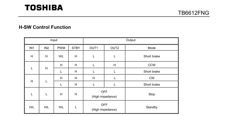 電機驅動芯片TB6612FNG驅動邏輯如下: