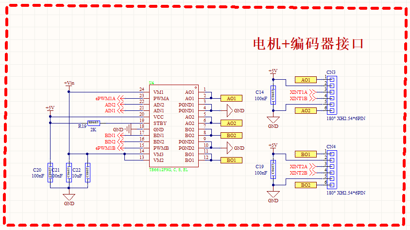 電機測速代碼邏輯:檢測左右兩個電機的轉速需要用到兩個eQEP,F28035內部的eQEP模塊不夠;但是F28035提供了6路可屏蔽外部中斷(XINT1至XINT6),每個中斷線可配置為響應特定GPIO引腳的邊沿(上升沿、下降沿或雙邊沿)或電平變化觸發。我們可以考慮用一路外部中斷和一個普通IO口組合起來檢測電機轉速;具體操作為設置外部中斷為上升沿觸發中斷,然后在中斷響應里面檢測IO的高低電平,高電平為正轉,計數值加一;低電平為反轉,計數值減一;通過固定時間讀取計數值計算電機轉速。