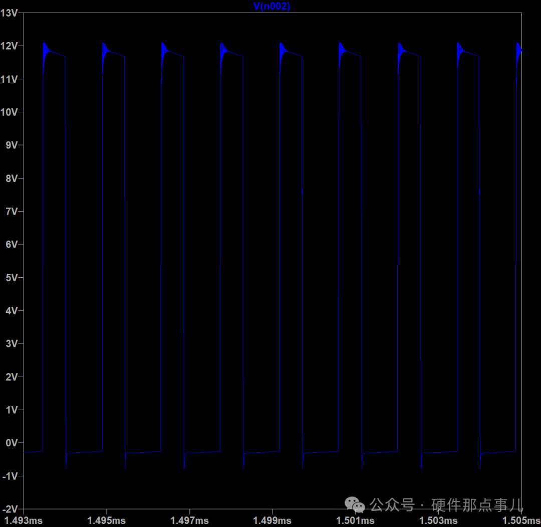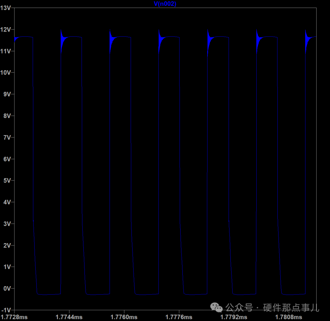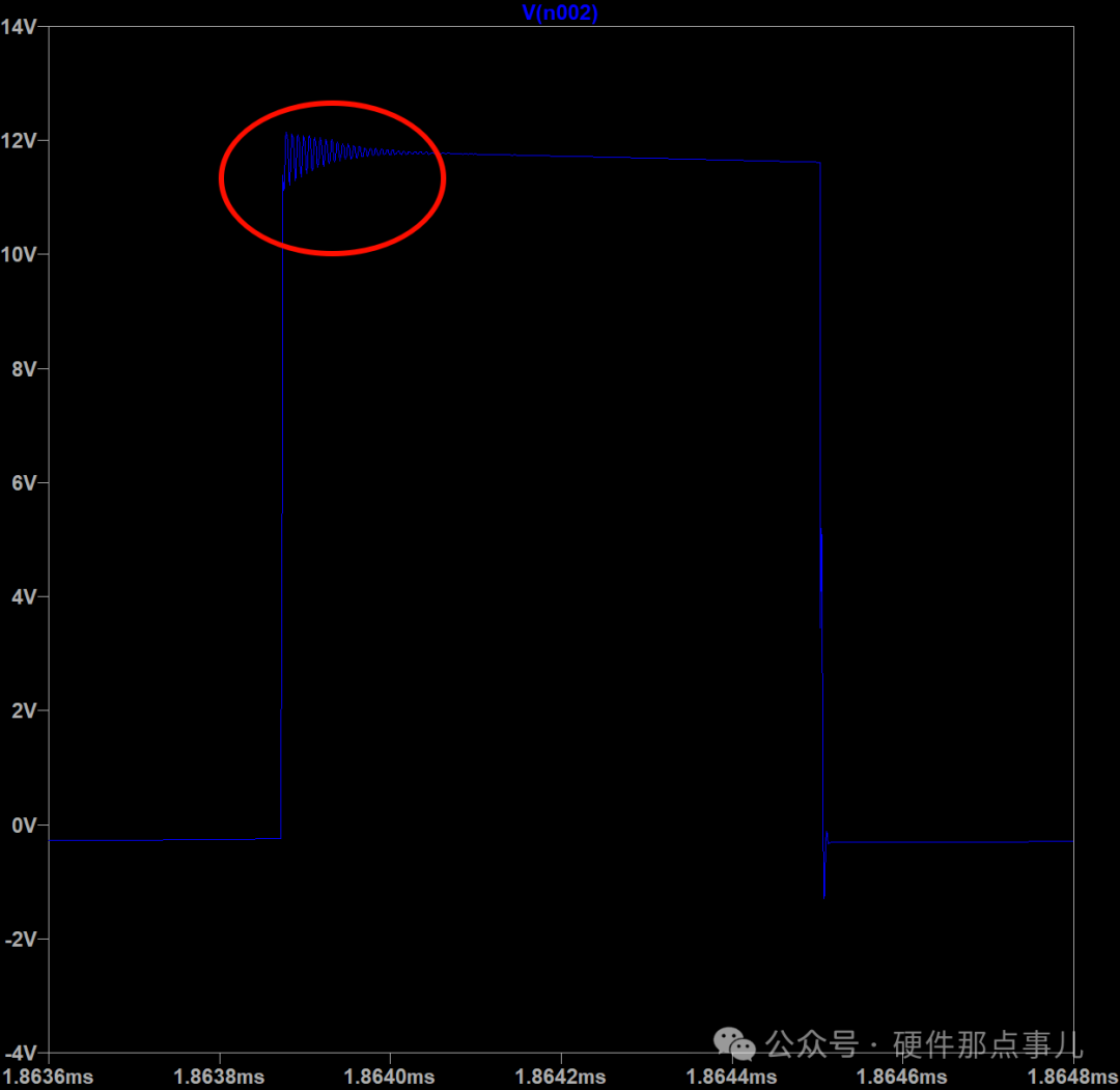 修改電阻,效果似乎不大,Snubber對下面紅圈中的振鈴始終沒啥改善,大家有什么好方法嗎?歡迎評論,改天我們再聊聊這個問題。