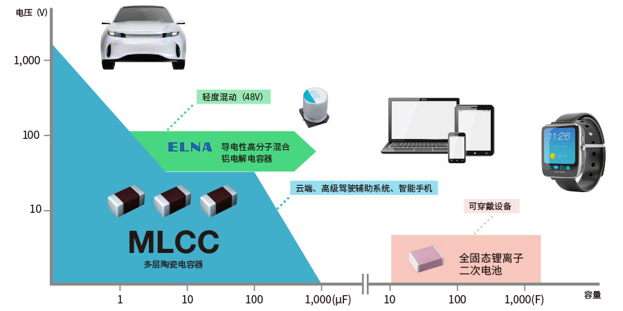 除多層陶瓷電容器(MLCC)外,電容器還包括電解電容器和薄膜電容器等類型。隨著節能化、物聯網化的進一步加速發展,可以預見高性能電容器的需求量將在中長期內有所增長。多層陶瓷電容器(MLCC)對于實現電子設備的小型化、高性能化來說尤其不可或缺。太陽誘電將通過從材料開始進行研發和生產,為廣大客戶提供多種小型、薄型、大容量、高可靠性的產品系列,以滿足客戶的需求。